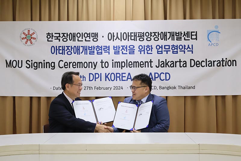 The Memorandum of understanding (MOU) made between DPI-Korea and APCD to implement the Jakarta Declaration in 2024 included discussion about future collaboration between APCD and DPI-Korea on 27 February 2024.