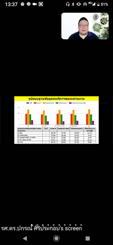 นางสาวศุภอนงค์ ปัญญาสิริมงคล เจ้าหน้าที่เครือข่ายและความร่วมมือเสนอความคิดเห็นในการประชุมออนไลน์ในประเด็นที่เกี่ยวกับผลการรวบรวมประเด็นสำคัญเพื่อการติดตามและประเมินผล