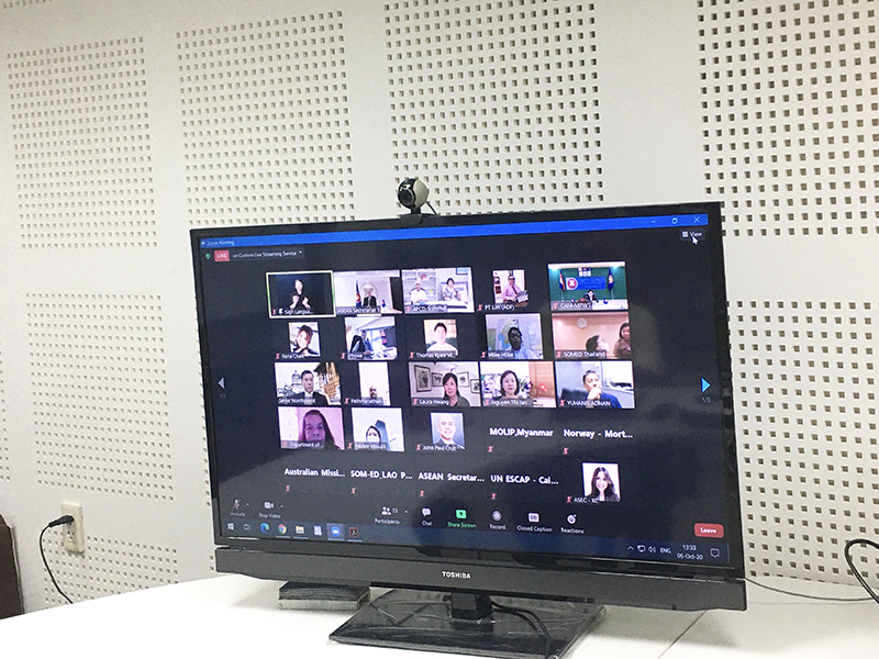 กล่าวเปิดงานโดย พณฯ ท่าน Kung Phoak ผู้ช่วยเลขาธิการกรมอาเซียน ด้านชุมชน วัฒธรรม และสังคม